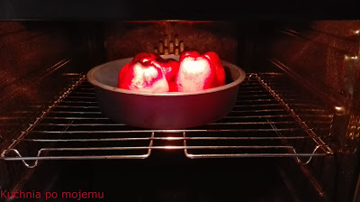 Umytą paprykę w całości układamy na blasze wyłożonej papierem. Można