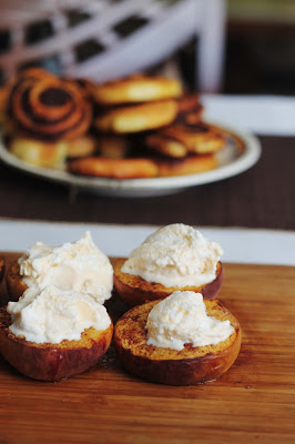 SKŁAD:3 duże brzoskwinie1-2 łyżki solonego masła2 łyżki brązowego cukru1/2 łyżeczki cynamonulody waniliowe