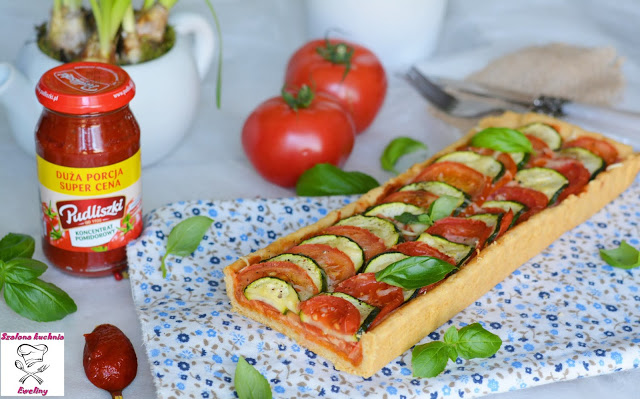 Krucha, chrupiąca tarta z mocno pomidorowym nadzieniem połączonym z serem, przykryta warstwą…