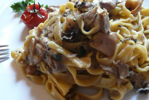 Włoskich dań z grzybami jest mnóstwo. Grzybami nadziewa się tortellini, z grzybów i cukinii przyrządza się risotto. Grzyby się smaży na oliwie, faszeruje nimi lasagne, układa na pizzy i gotuje wyborną zupę. Trufle znajdują jeszcze inne, ekskluzywne zastosowania.