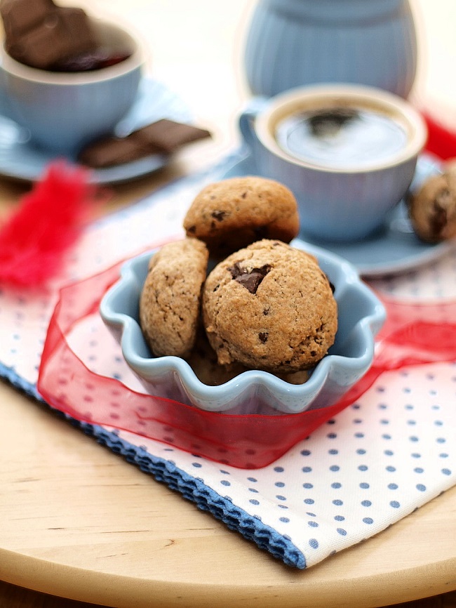 Kolejny pomysł na ciasteczka – tym razem orkiszowe z dodatkiem suszonej żurawiny i gorzkiej czekolady. Mąkę możemy dodać dowolną, dodatki pozmieniać wedle własnych upodobań, niemniej jednak szczerze namawiam do podanej niżej propozycji 🙂