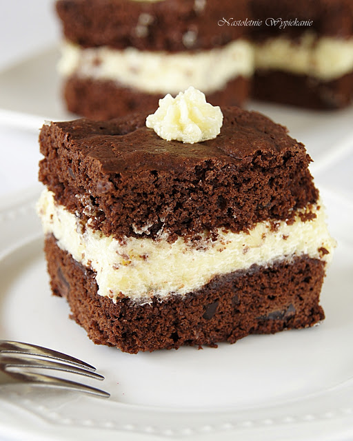 Przepis na klasyczne Brownie znajdziecie tutaj- klik. Dzisiaj jednak mam dla Was małą wariację Brownie 😉 Połączyłam to ciasto z waniliowym kremem i powstało coś naprawdę wyjątkowego! Ciasto wyglądem przypomina W-Z, ale jak się spojrzy na składniki, nie ma z Wuzetką nic wspólnego. Brownie jest ciężkie i intensywnie czekoladowe.