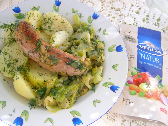 Składniki: surowa biała kiełbasa 5 sztuk, olej rzepakowy 8 łyżek, cebula 3…