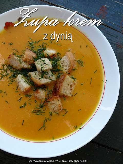 Jesienny sezon rozpoczynam zupą dyniową, właściwie to zupa krem warzywna z dodatkiem dyni. Jest treściwa i smaczna. Pachnie lekko imbirem i papryką. Ja robię ją