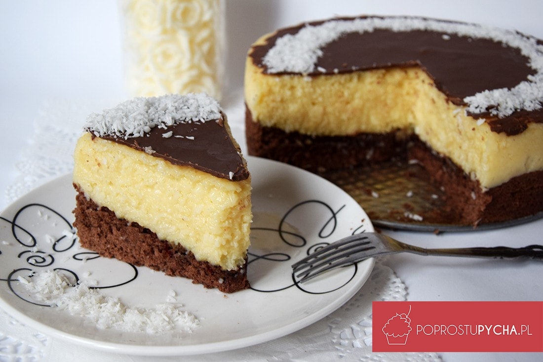 Czekoladowy biszkopt, słodka, budyniowa masa kokosowa i polewa z czekolady mlecznej… Przeeeepyszne ciasto, za które zabierałam się już od jakiegoś czasu. Słyszałam wiele pozytywnych opinii na jego temat lecz żaden przepis mnie do końca nie przekonywał więc postanowiłam zrobić swoja własną wersję. Połączenie kokosu z czekoladą to dla mnie strzał