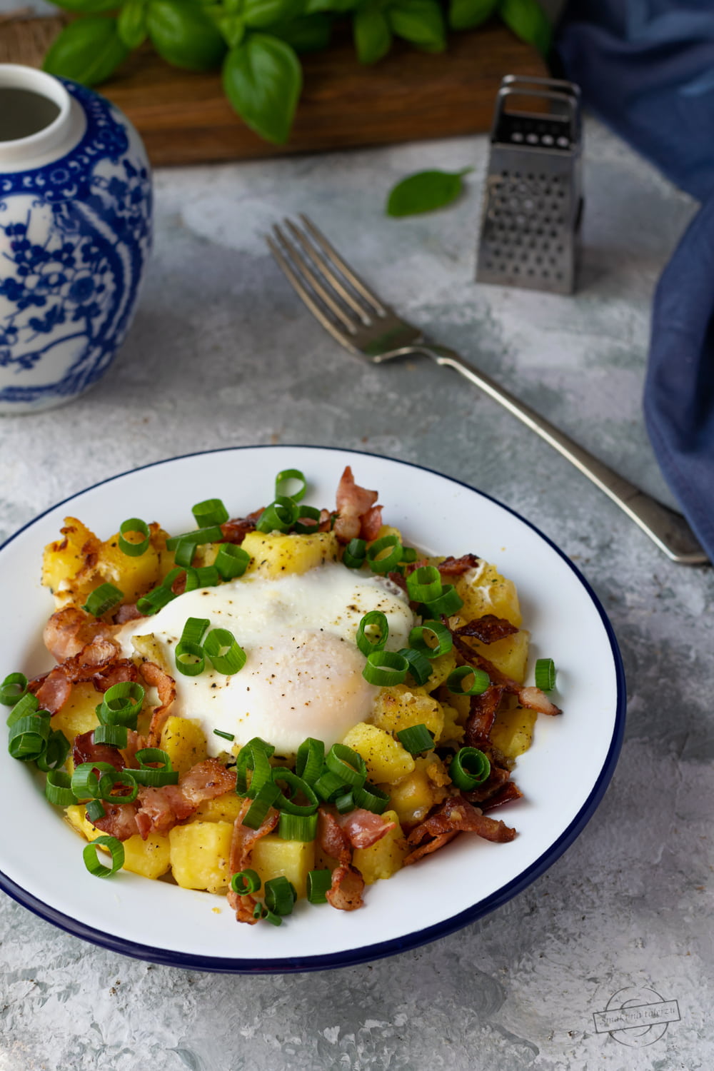 Jajka sadzone na ziemniakach z boczkiem i cebulką – już sama nazwa…