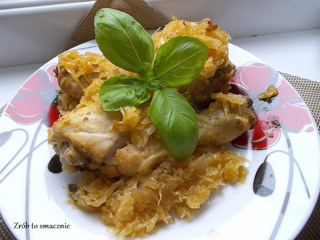 Mój codzienny problem… co dziś na obiad? Kupiłam pałki z kurczaka i rozmyślałam jakby je inaczej przygotować. I tak wpadłam na pomysł, żeby upiec je z kapustą kiszoną. Obiad robił się „sam” a ja w między czasie mogłam zrobić wiele innych rzeczy.
