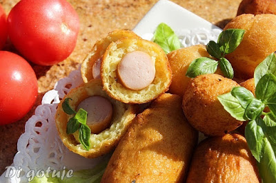 Pomysł autorski (mój).Zapewne pamiętacie moje ptysie ziemniaczane…?Fakt są pyszne, a ciasto troszkę pracochłonne.Pomyślałam sobie, ze przy okazji można zrobić go