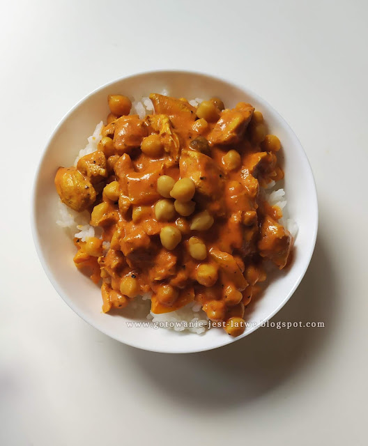 Sos pomidorowy z kurczakiem, ciecierzycą i mlekiem kokosowym