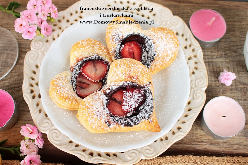 składniki: 1 arkusz ciasta francuskiego ulubiony krem czekoladowy truskawki, mogą być mrożone…