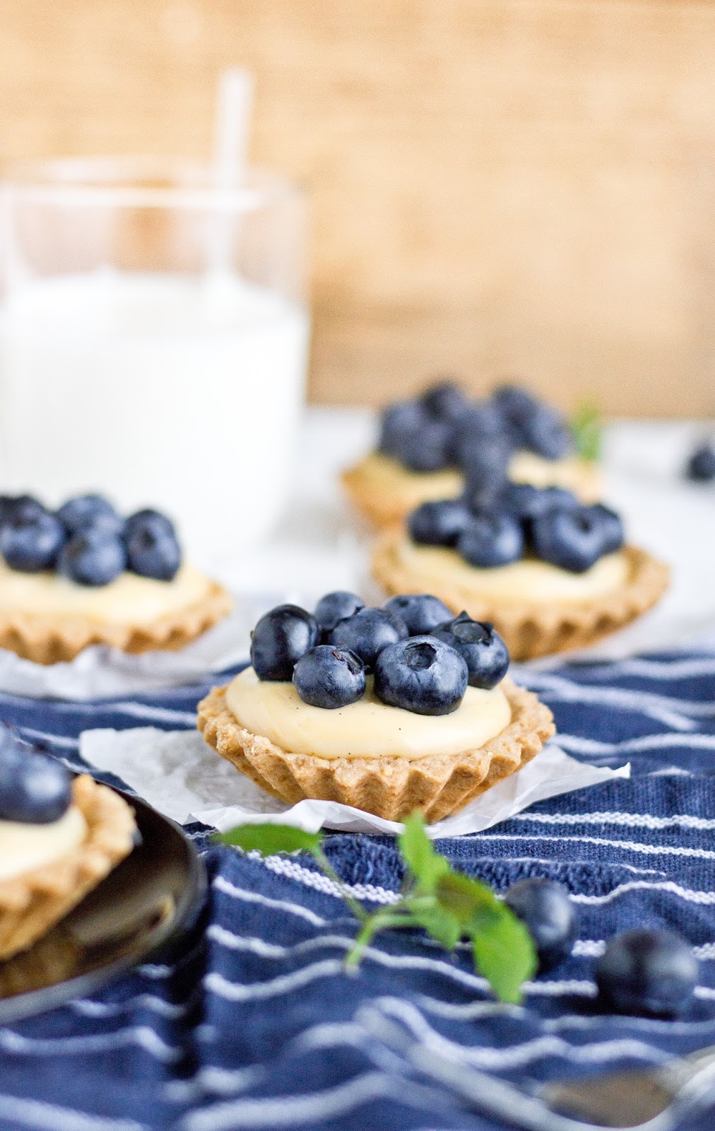 Absolutnie obłędne połączenie idealnie kruchego ciasta, słodkiego kremu pâtissière i świeżych borówek w postaci małych babeczek. Gwarantuję, że nikt nie oprze się pokusie spróbowania chociażby jednej.