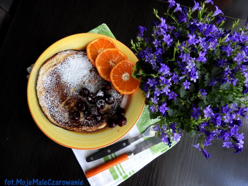 Na śniadanie proponuję puszysty omlet z owocami.Szybko się go smaży, szybko zjada…