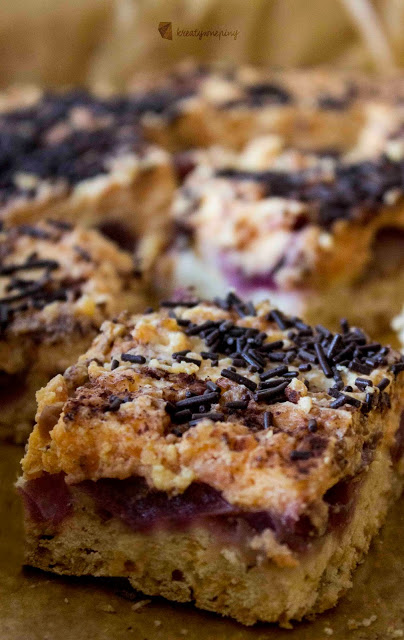 Składniki:(na dużą blaszkę) Ciasto:2 szklanki mąki pszennejpół szklanki cukru pudrupół kostki masła-…