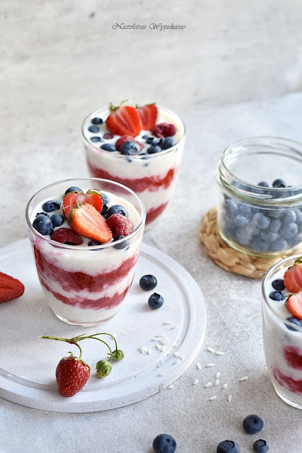 Obłędny pudding ryżowy z sezonowymi owocami- borówkami, malinami i truskawkami oraz pastą…