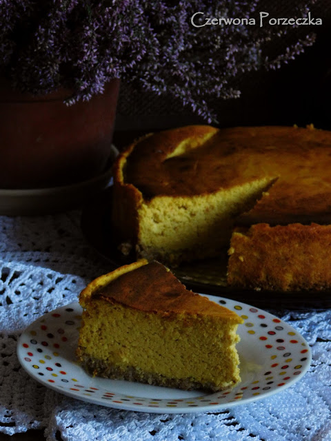 Zapraszam serdecznie na typowo jesienny, lekki sernik w nieco odchudzonej wersji ;)Jak się okazuje do sernika nie potrzeba wcale dużo tłuszczu ani mąki, żeby wyszedł puszysty i rozpływający się w ustach 😉 Ciasto jest niesamowicie proste do wykonania, dlatego zachęcam, nie będziecie żałować! 🙂