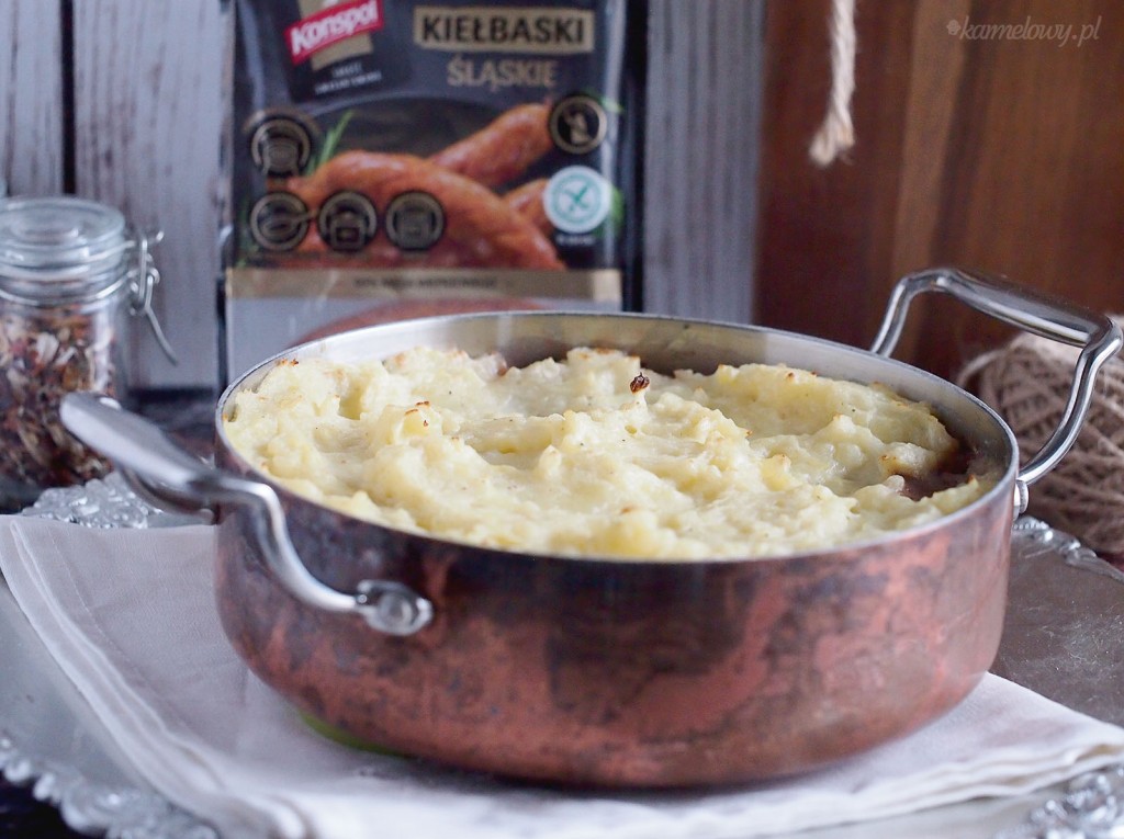 Kiełbasa zapiekana z warzywami i puree ziemniaczanym / Sausage, vegetable and mash bake