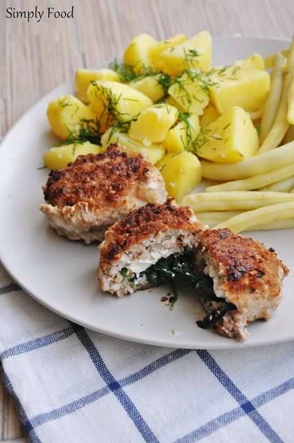 Dla urozmaicenia tradycyjnych mielonych tym razem napakowałam je świeżym szpinakiem i serem…
