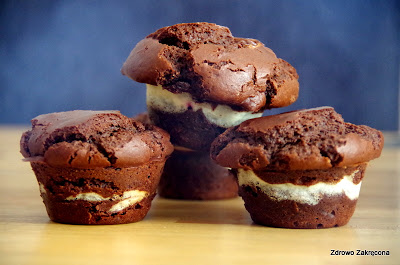 No i kolejne muffiny, bo muffinów nigdy dość. Ale te są inne niż wszystkie. Czekoladowe, trochę jakby brownie, z masą serową i malinami w środku. Poezja! Inspirowałam się przepisem z Kwestii Smaku, ale przerobiłam na własną, bezglutenową modłę, modyfikując jeszcze w kilku miejscach, żeby uzyskać znacznie zdrowszy przysmak.