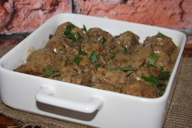 1 kg mięsa mielonego np z łopatki wieprzowejsól,pieprz, słodka paprykamąka do obtaczania pulpecikówdodatkowo:szklanka śmietany 30%szklanka bulionu warzywnegogarść suszonych prawdziwkówkilka gałązek natki pietruszkisól,pieprzWykonanie:Grzyby myjemy, moczymy