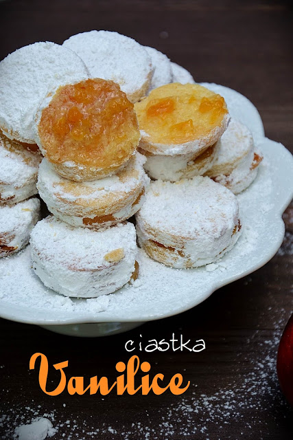 Kruchuteńkie, delikatne i rozpływające się w ustach ciastka, przełożone marmoladą lub konfiturą i suto obtoczone w cukrze pudrze… Naprawdę nie sposób im się oprzeć! 🙂 Jak zaznacza autorka, ciasteczka te są tradycyjnym serbskim przysmakiem, który przygotowuje się nie na maśle czy margarynie, ale na smalcu. Zważywszy jednak na to, że