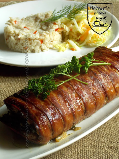 podwędzany bekon w plastrach