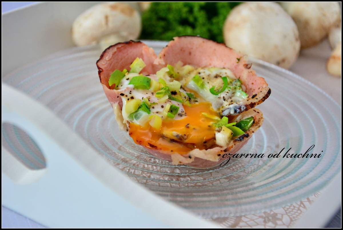 Składniki: 4 jajka rozm. L 4 plastry szynki 10 dkg pieczarek 2-3 liście młodego jarmużu kawałek pora sól, pieprz olej Przygotowanie: Pieczarki pokroić i podsmażyć razem z posiekanym jarmużem, posypać …