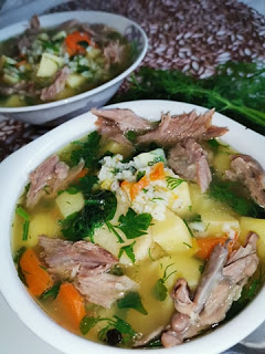 Ryżowa z ziemniakami na szyjach indyczych.