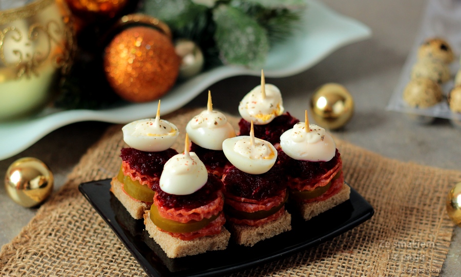 Koreczki z salami i jajkami przepiórki