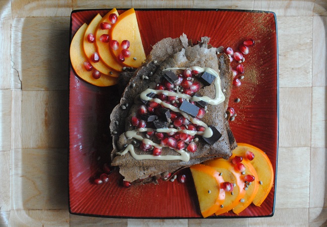 803. Karbowo- różane naleśniki z kokosowo- dyniowym pure z ciecierzycą