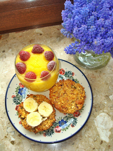 Dziś szybkie śniadanie. Mus z mango i banana, podany malinami. Do tego…