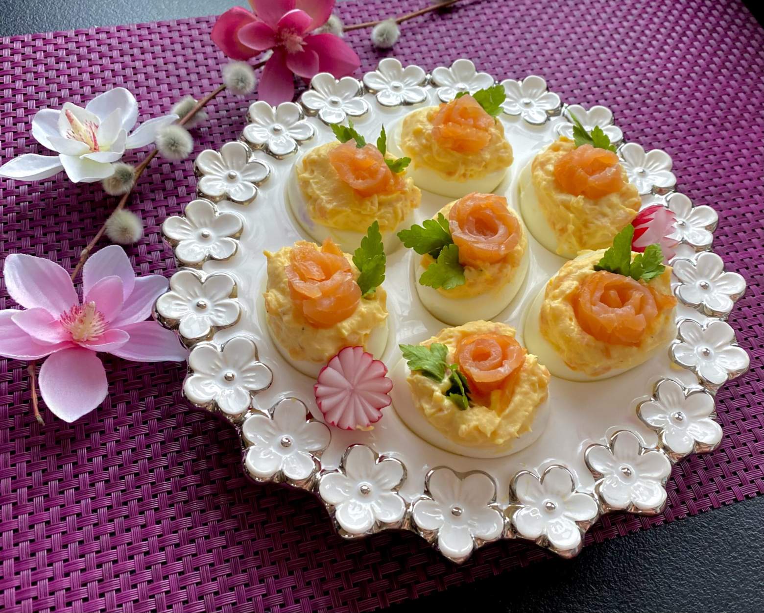 Wielkanocne jajeczka z łososiem Jajeczka wypełnione kremową pastą z chrzanem i łososiem,…