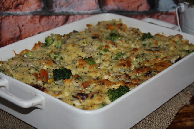 Wrzucić wszystko do jednego naczynia, zapiec ..i gotowe! Takie dania na jesień lubię najbardziej. W tej zapiekance każdy znajdzie coś dla siebie. Jest kurczak, warzywa, duuużo żółtego sera…Pychota!