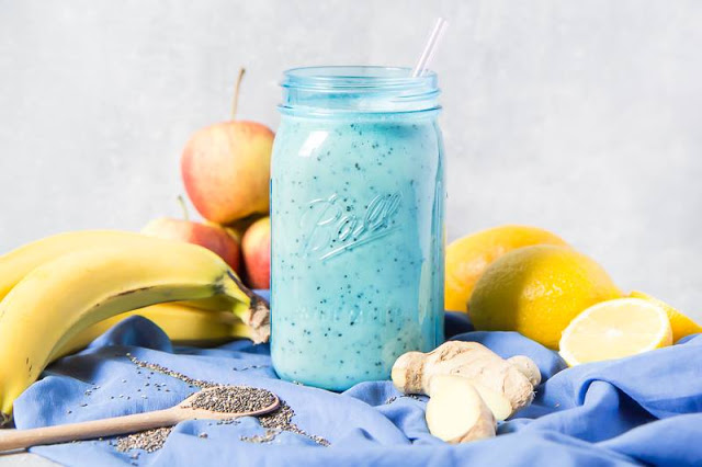 mleko roślinne + chia + banan + jabłko + cytryna + imbir