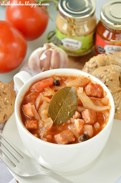 Uwielbiam dania z kapusty. Będąc dzieckiem pamiętam jak mama przygotowywała taką kapustę od czasu do czasu na obiad. Spróbowałam odtworzyć smak bigosu ze słodkiej kapusty dodając pomidory w puszce i odrobinę koncentratu