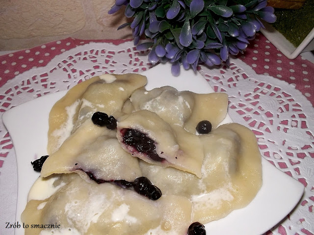 Pierogi z jagodami to dla mnie najlepsze pierogi- smak dzieciństwa, kiedy to chodziło się do lasu na jagody i jeszcze tego samego dnia albo następnego były pierogi na obiad 🙂 Polane śmietaną i posypane cukrem to po prostu „niebo w gębie” 🙂 Lubicie?