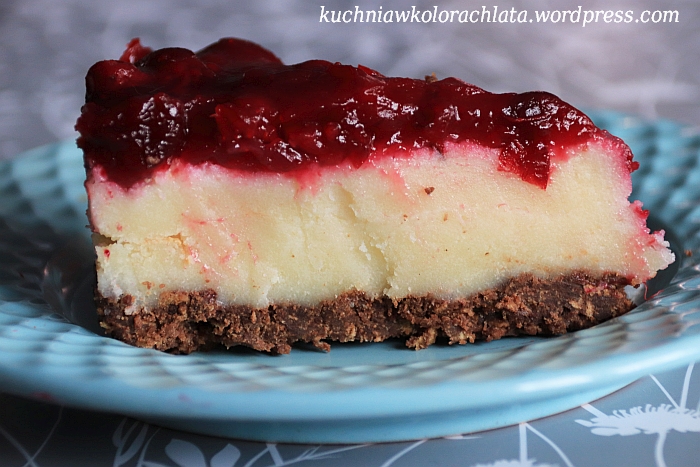 Ciasto z kaszy manny z mlekiem skondensowanym i frużeliną żurawinową