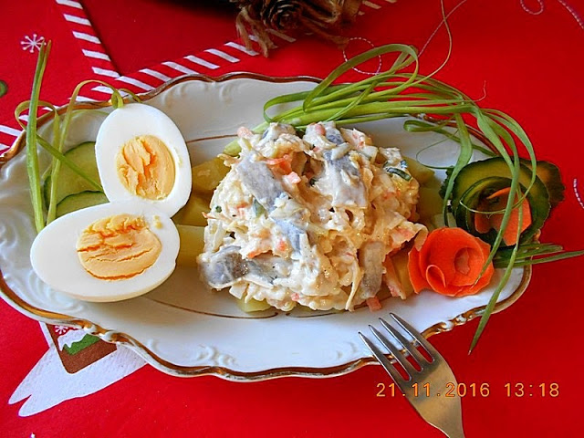 Proponujemy sałatkę z wielu świeżych warzyw i śledzia.Świetnie smakuje podana na ugotowanych ziemniakach,pokrojonych w kostkę i ugotowanym jajkiem.