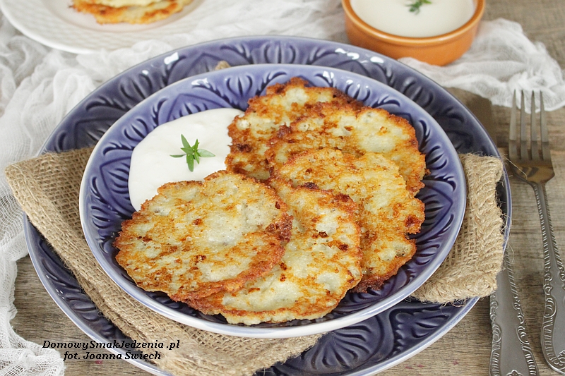 Ziemniaki obieramy, myjemy i ścieramy na tarce. Dodajemy jajko, mąkę oraz pokruszony ser. Doprawiamy do smaku. Wszystko mieszamy. Na rozgrzanej patelni z tłuszczem smażymy porcjami nakładanymi łyżą, formując placuszki.