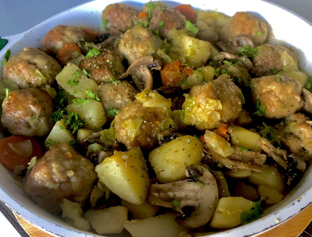 Swojski garnek Smakowite i sycące danie jednogarnkowe z klopsikami, młodą kapustą, pieczarkami…