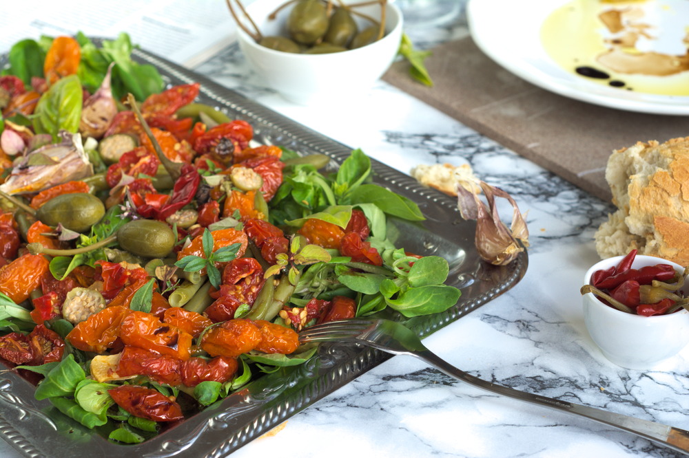 Pieczone, słodkie i aromatyczne pomidorki ze świeżą sałatą oraz kwaśnymi i ostrymi…