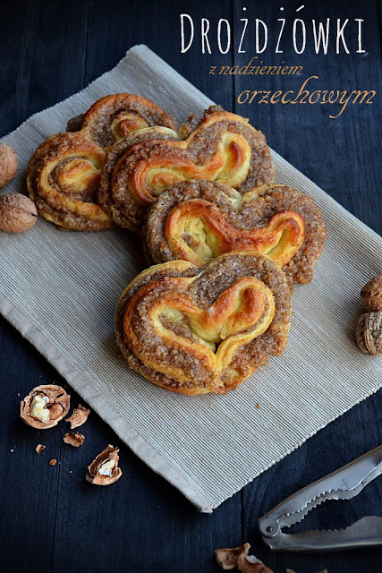 Bułeczki z rewelacyjnym, orzechowym farszem, powstałym na bazie orzechów włoskich, który dzięki dodatkowi brązowego cukru oraz cynamonu, czyni je niezwykle jesiennym wypiekiem… Ja swoje bułeczki uformowałam na kształt serduszek, tak jak autorka, ale równie dobrze mogą to być zwykłe „ślimaki” lub też, inny ulubiony przez Was wzór 🙂 Bardzo polecam,