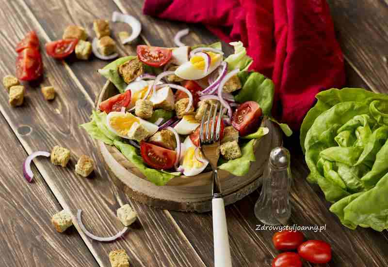 Sałatka z piersią z kurczaka i grzankami. Najlepsza sałatka z grillowanym kurczakiem…