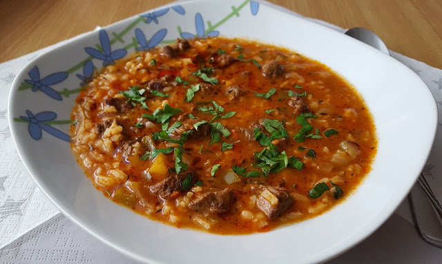 Zupa jest bardzo smaczna, zagęszczona ryżem.
