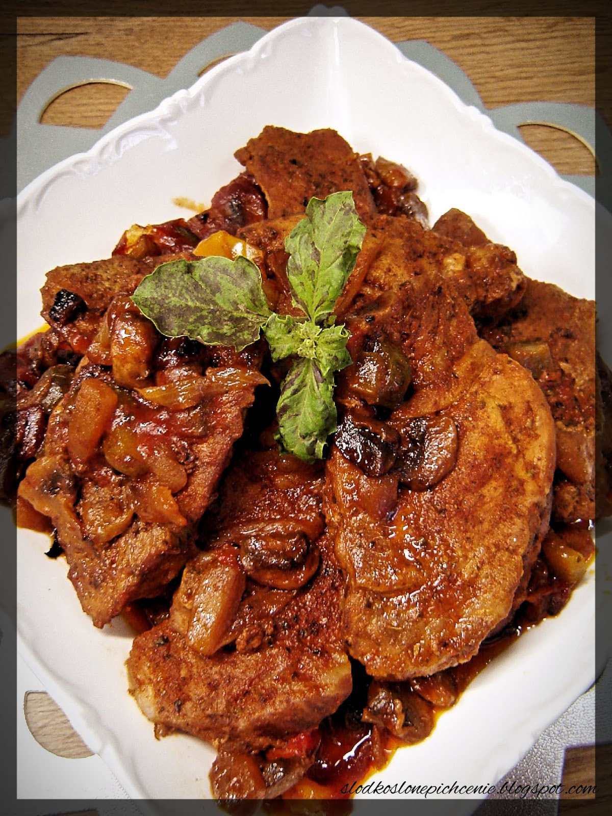 Aromatyczna i krucha karkówka pieczona w naczyniu żaroodpornym z dodatkiem pieczarek, jabłkiem,…