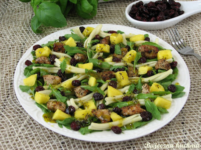Sałatka jest lekka, smaczna i szybka do przyrządzenia, przygotowałam ją na kolacje bardzo mi zasmakowała. Uwielbiam takie połączenie smaków. Możemy ją również przygotować na różne uroczystości rodzinne lub święta, ładnie się prezentuje na stole.