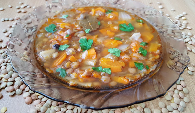 Zupa z zielonej soczewicy na bazie podsmażanych warzyw to moja kolejna propozycja na pożywny obiad w wersji bezmięsnej.