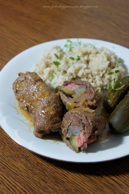 Składniki:– ok. 500g wołowiny na kotlety– kawałek boczku wędzonego– ok. 3 ogórki…