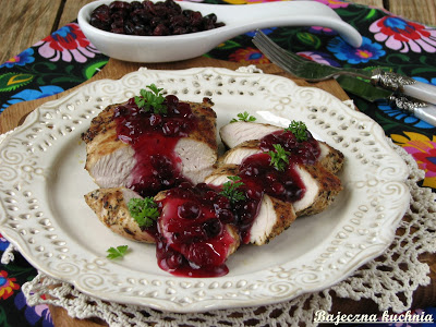 Polędwiczki przygotowałam na niedzielny obiad, wyszły bardzo smaczne i soczyste. Sos żurawinowy doskonale się łączy z mięsem, najlepiej smakują podane z opiekanymi ziemniakami oraz surówką.