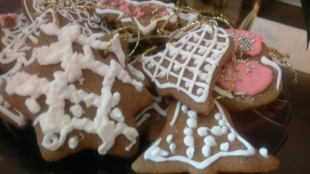 Pieczenie ciastek rozpoczęte. Na pierwszy rzut poszły pierniczki. Przepis bardzo dobry, gdzieś tam odgrzebany ze starego zeszytu. Po upieczeniu twarde, ale po włożeniu do szczelnego pudełeczka już na drugi dzień mięciutkie, pyszne , korzenne. Można dekorować lukrem i powiesić na choinkę lub zostawić bez dekoracji i zajadać.