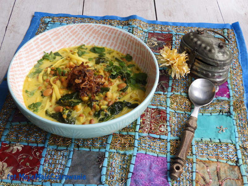 Irańska zupa z soczewicy, fasoli, makaronu i zieleniny
